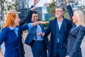 Senior Executives with Positive Attitude High-Five to Mark Achievement and Progress
